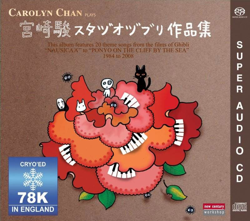演奏者Carolyn Chan 将这些乐曲发挥得很好。节奏、速度与力量都协调的恰到好处,尤其抒情的部份,演奏十分流畅。左手的低音和弦伴奏,搭配堪称完美。光是听伴奏就已经能感觉旋律的优美。不单是左手很强,右手主旋律与装饰音的发挥,真是如同`大珠小珠落玉盘`,是一种清脆流畅的感觉,完全不会有生手那种死板、生硬的尖锐声音。即使是带一点哀伤的`もののけ姫`,弹奏也一点不会让人有沉重的感觉。